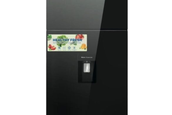 ثلاجة 2 باب فريزر علوي. لون الزجاج اسود ضاغط عاكس، موزع مياه 495WTPGD